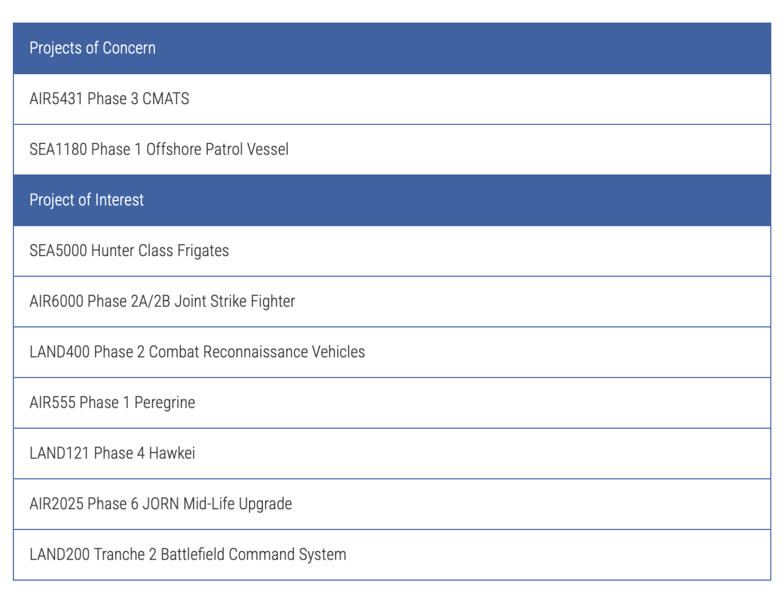 Projects of Concern and Interest (Source: Auditor-General)