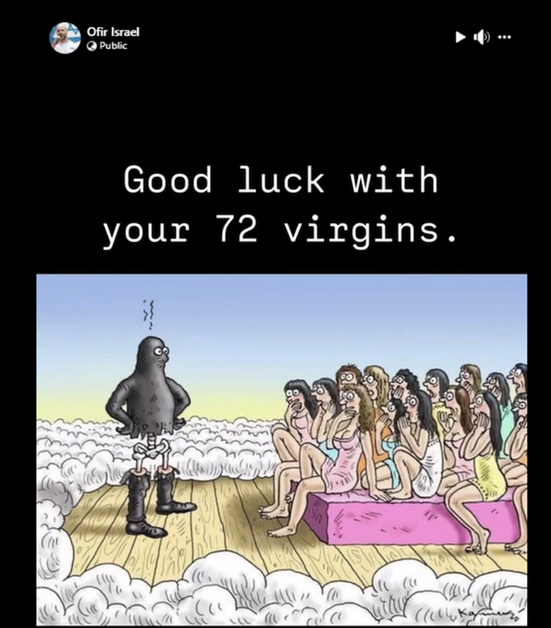 Birenbaum has posted many images and comments which are offensive to the Muslim community and followers of Islam.